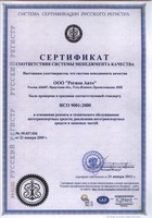 Сертификат соответствия системы менеджмента качества 2009 г. |
